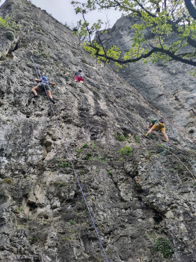 Le weekend du 18 et 19 avril, une vingtaine de membres du CUC Escalade ont pu profiter des merveilleuses falaises calcaires du rocher des Esclops, dans le cirque de Labeil, à proximité de Lodève.