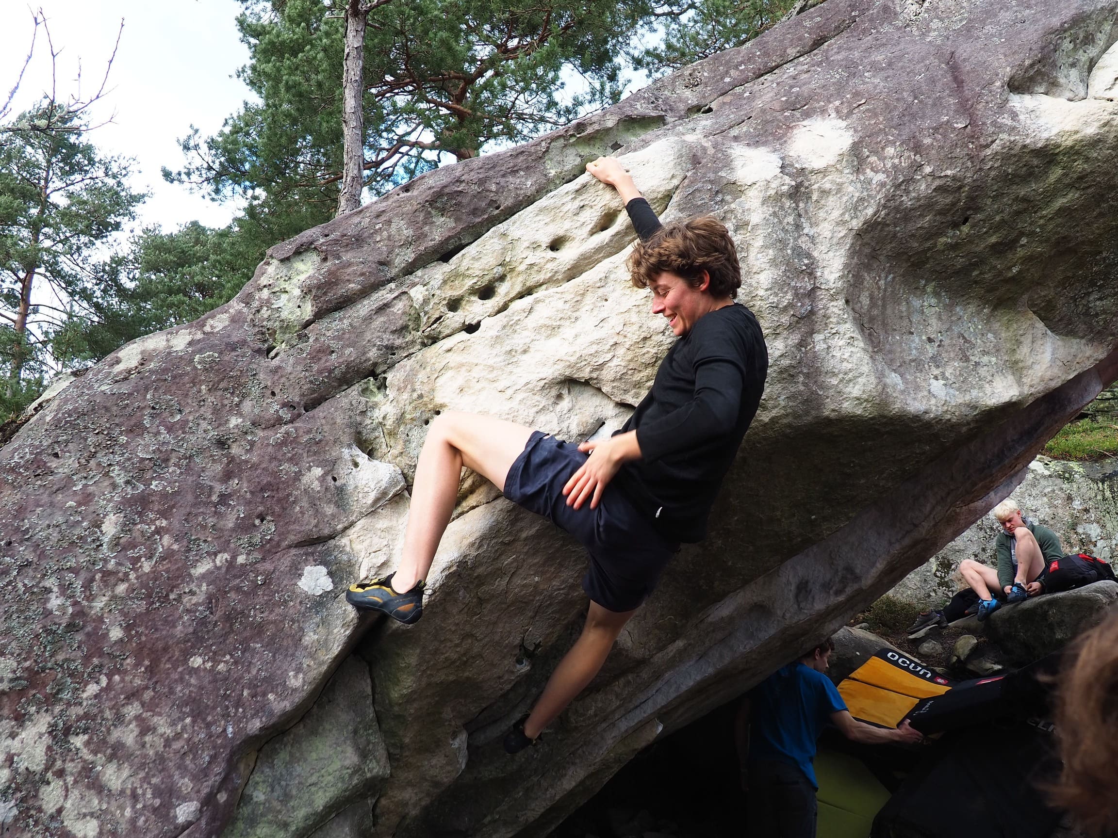 Le lendemain, le temps fut bien plus propice à une grimpe en extérieur et nous avons découvert les fameux rochers. Tout le monde a trouvé un bloc à son niveau et bien au delà bien sûr 😀